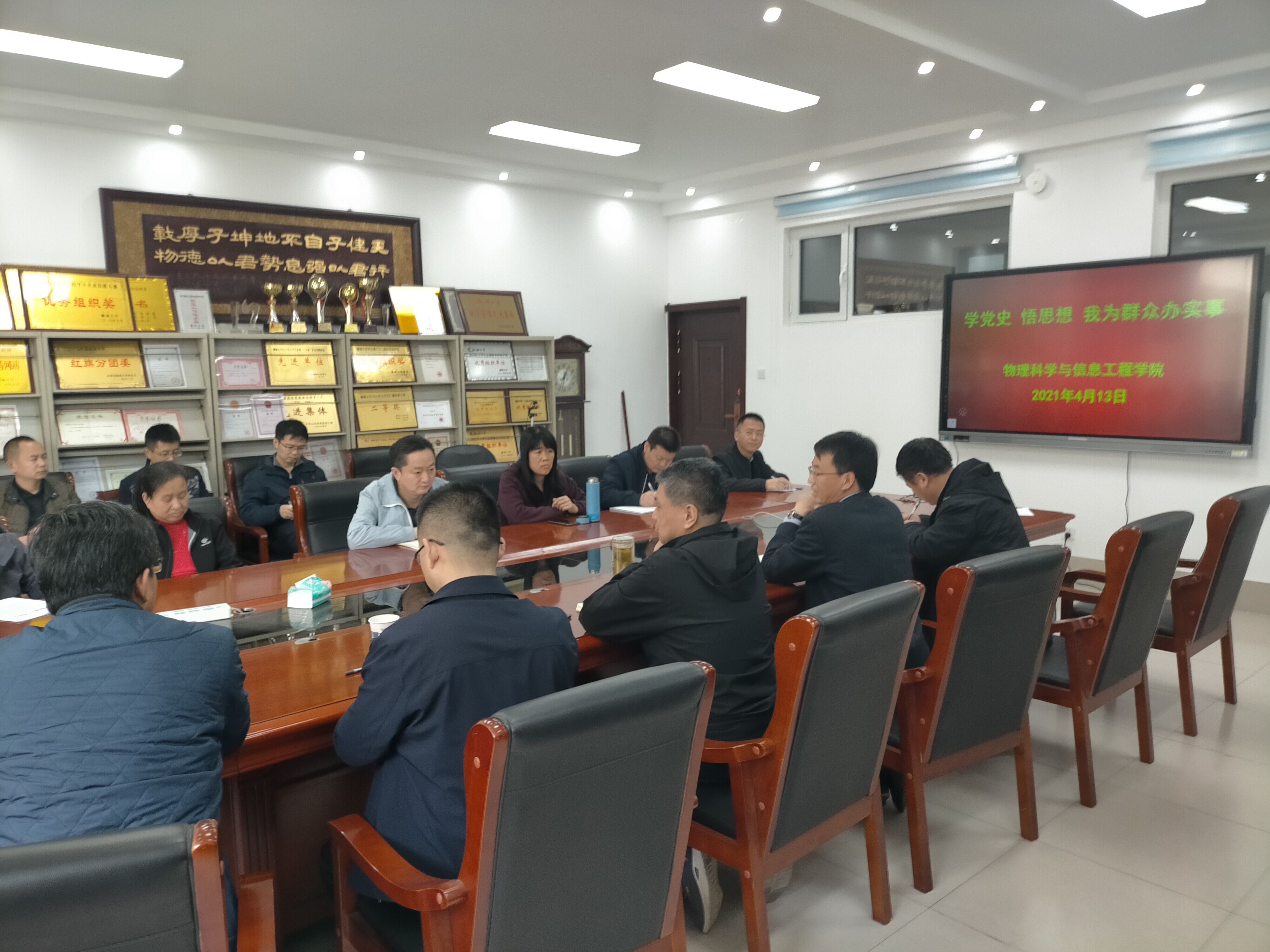4月13日下午,为庆祝中国共产党成立100周年,按照学校党委关于开展党史学习教育要求,学院在10C210举办“我为群众办实事”主题座谈会,听取教师对学院发展和师生最关心问题意见和建议。学院党总支成员、学院世界杯体育官方网站会主席、各支部书记和教师代表23人参会,会议由党总支书记邵鑫主持。