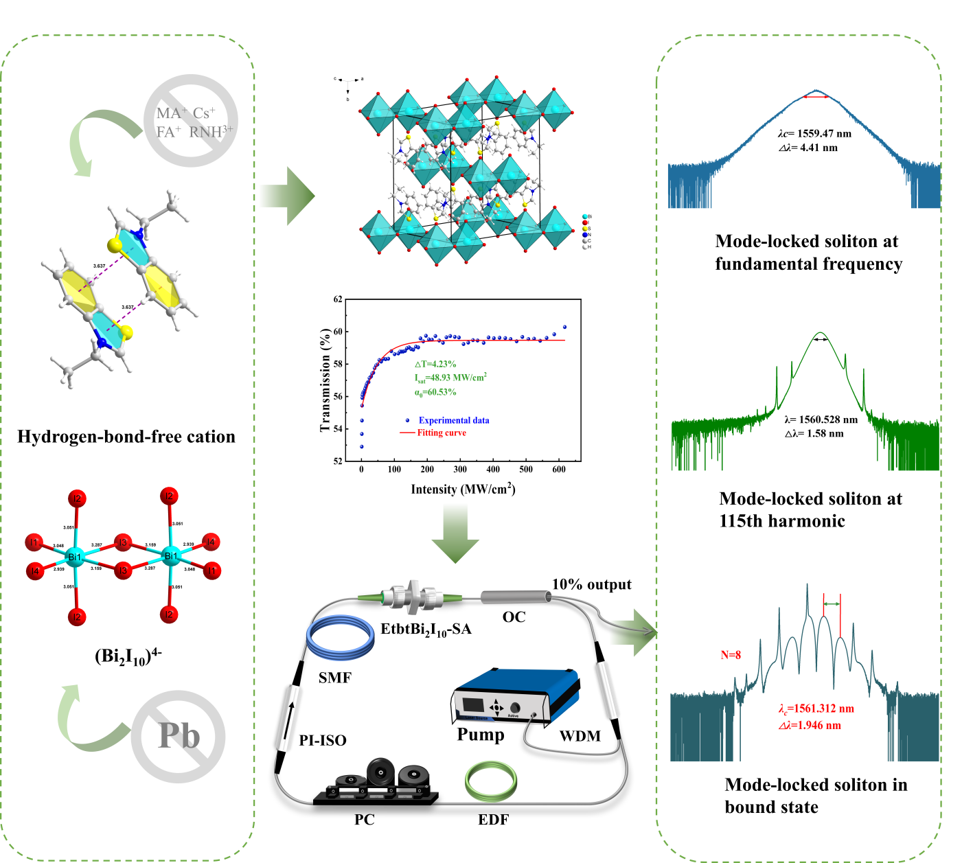 进展二:无铅钙钛矿EtbtBi₂I₁₀在高重频谐波锁模光纤激光器中的应用