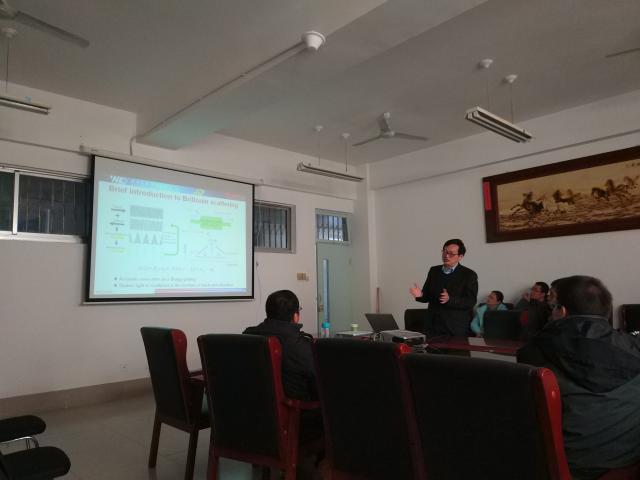 报告会上,孙军强教授简要介绍了受激布里渊散射的概念以及在集成光电子中的发展前景,重点阐述了在光纤激光器、微波光子学、动态光栅中的应用,以及在微环谐振腔中的可行性。孙教授结合多年研究历程,向在座师生分享了研究心得,并认真解答了师生提出的相关问题。