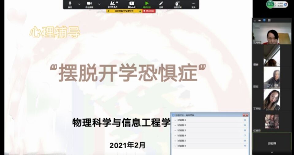 春节假期马上就要结束了,新学期马上就要来临了,你是否做好开学的准备?为了让同学们提前做好开学准备,调整好心态。让同学们尽快的适应学校生活,摆脱心理上的“开学恐惧症”,世界杯体育官方网站心理部于2月26日特此召开朋辈心理“云”辅导—摆脱“开学恐惧症”活动。
