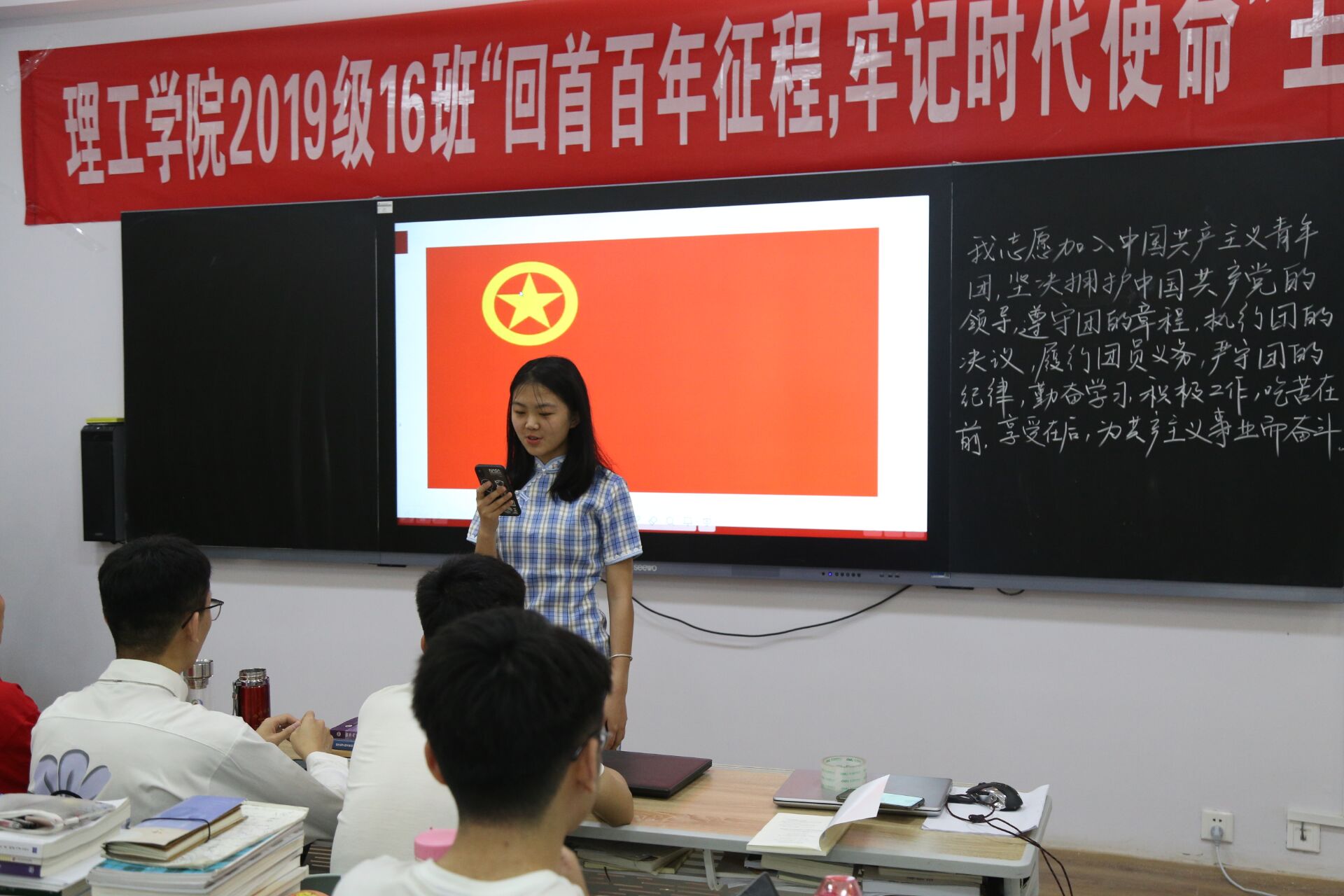 以史鉴今,以史育人。各级团组织结合实际开展了主题突出、特色鲜明、形式多样的主题团日活动来引导广大团员青年了解党的光辉历史、感悟党的初心使命、领会党的创新理论、体认党的精神谱系、传承党的红色基因。其中,19级16班团支部创新活动形式,以“回首百年征途,牢记时代使命”为主题,通过重温入团誓词、观看红色电影、开展知识问答等形式,不断加深同学们对党史内涵的理解与领悟,深刻体会到学习党史的重要性和必要性,进一步增强同学们的历史责任感和使命感。以史为鉴,奋发向上。20级14班团支部则以“追寻党史 百年记忆”为主题,组织本班同学开展了相关知识理论学习、合唱红歌、开展红色诵读等团日活动形式,增强了广大团员青年学习党史的兴趣,让百年党史深入青年心,激励青年从历史中获得启迪,以更加昂扬的精神状态和奋斗姿态建功新时代、奋进新征程。