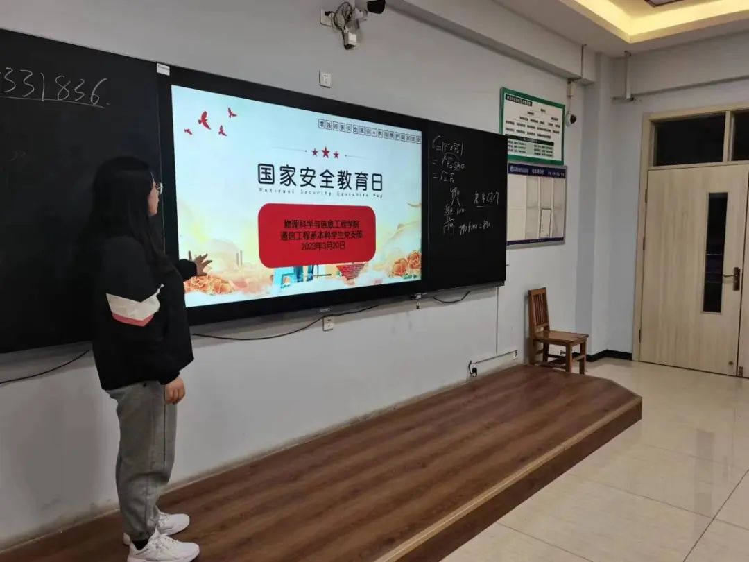 为教育引导学生树立正确的国家安全观,增强安全意识和安全素养,营造良好的维护国家安全的氛围。4月13日,世界杯体育官方网站组织开展“增强国家安全意识,共同维护国家安全”主题班会活动,19、20、21级由班级学生干部组织班会,进行国家安全相关知识的学习,22级由通信世界杯体育官方网站程系本科学生党支部赵晓彤作为主讲人,在各班进行宣讲。