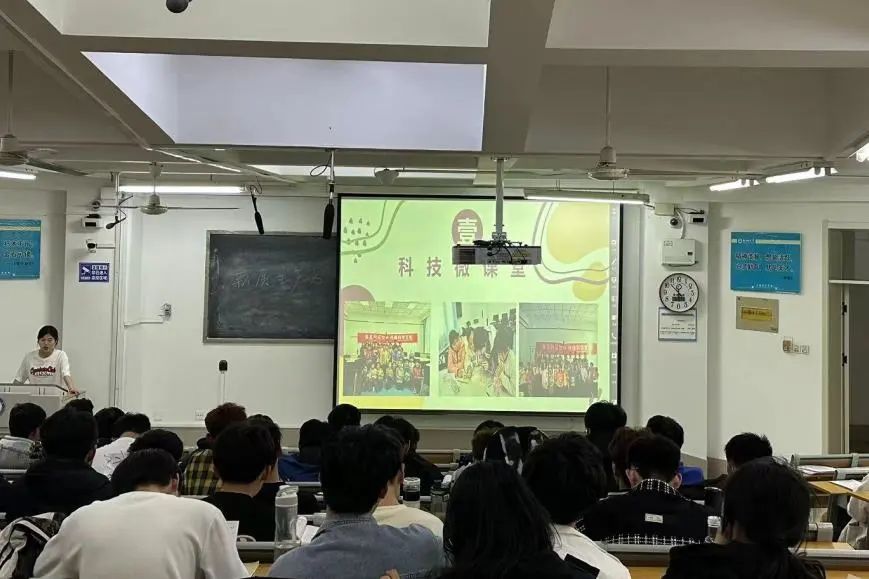 会议过程中,孙明娟从科技微课堂、“小粉笔”公益课堂、寒假社会实践等方面展示了部分社区实践经历,鼓励同学们将所学知识与实际相结合,为社区服务世界杯体育官方网站作贡献青春力量。同时她指出,科技微课堂是提升学生反应能力和语言表达能力的有效渠道,同学们在实际操作和亲身体验的过程中,不仅能够巩固所学知识,也能激发小朋友们的热情和创造力。随后,孙明娟针对社区实践的必要性,为在场的同学们提供了许多实用的建议,她强调在实践过程中,应注意打破实践经验匮乏的壁垒,扩大社会接触面,在磨练中丰富自己的阅历。最后,同学们积极进行互动,就社区实践方向、渠道等问题进行了提问,孙明娟一一详细解答,为同学们今后的社区实践世界杯体育官方网站作提供了清晰的思路。