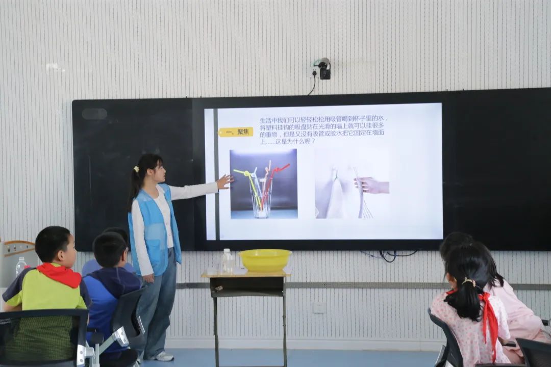 本次科技微课堂走进三年级一班与二班,共有75名小朋友听课。本次授课向小朋友们讲解了折射现象。活动伊始,志愿者们以储光羲的诗《钓鱼湾》为引子为小朋友们讲述了生活中的折射现象,随后,通过实验向小朋友们讲解了折射实验的实验步骤和原理,通过观察折射现象,小朋友们更加直观的了解了折射现象的成因与本质,举一反三,积极讨论。
