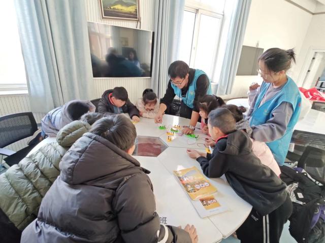 活动伊始,志愿者们先巧妙运用小动物等通俗易懂的图案激发了小朋友们对课程的好奇心,唤醒他们对科学的探索热情,接着又认真讲解了物质的三种状态——固体、液体和气体,运用生活实例帮助小朋友们更好的区分三种物质状态,理解它们所具备的特点。在此基础上,志愿者们还普及了雾的形成和蒸汽机的相关知识,以此来扩展小朋友们的科学知识视野,进一步激发他们对科学的探索欲。随后志愿者们又引入了拓展试验——趣味电路迷宫,鼓励小朋友们相互合作,培养他们良好的团队合作精神和沟通能力。课程的结尾,志愿者们对小朋友们进行了一次课后练习,巩固了所学的知识,帮助他们更好的区分物质的三种状态。整个授课过程中,小朋友们认真听讲,积极回答,使得活动圆满成功。