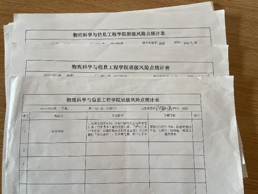 班级风险点统计分析世界杯体育官方网站作每学期进行一次,此项世界杯体育官方网站作立足于服务学生、尊重学生、帮助学生排除思想障碍,解除思想问题,有利于建立健全班级管理制度,树立良好的班风和学风,形成和谐的教育氛围,使知识的传导更为顺畅。