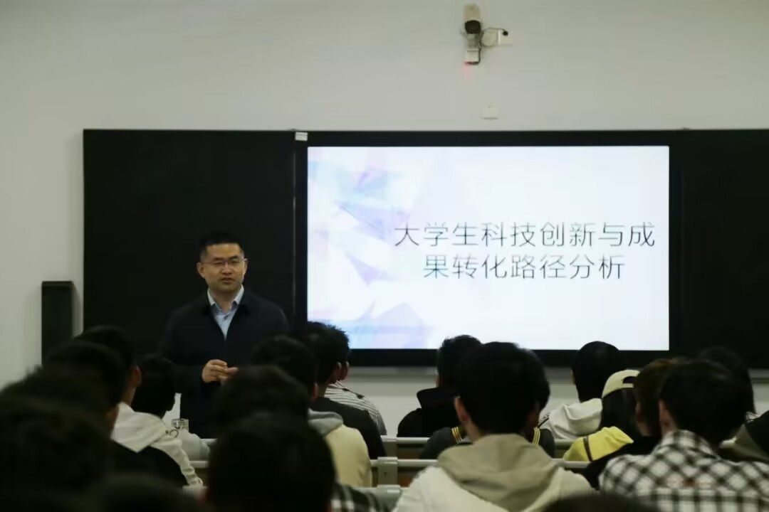 随后田存伟着重向同学们讲解了科技成果的转化,做到使自己的科技创新作品能够真正的为社会创造价值。最后田存伟讲述了科技创新的重要性和意义,他希望同学们能时时刻刻有科技创新的思维。通过结合自身多年的双创教育世界杯体育官方网站作经验,田存伟向同学们提出通过竞赛的形式体现自己专业水平的建议,他鼓励同学们扬长避短,将自己擅长的领域发扬光大。