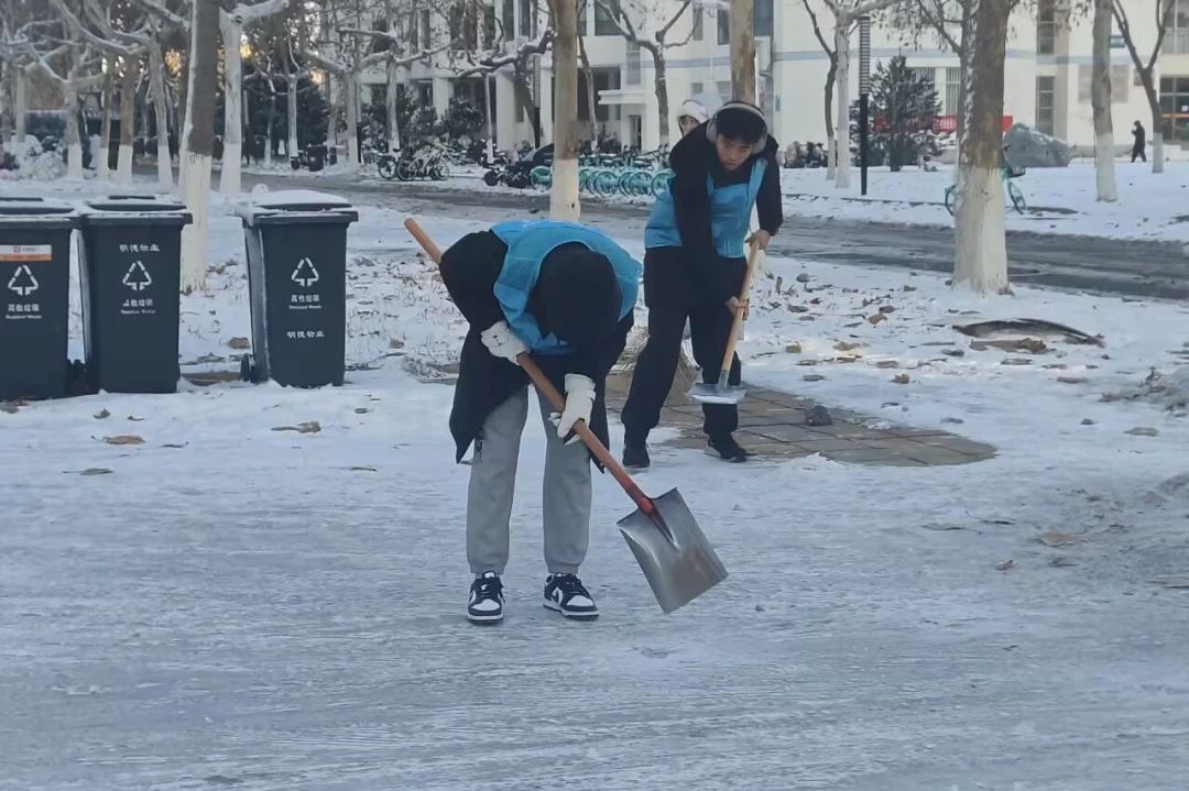 以雪为令,担当在肩。本次扫雪活动的顺利进行,有效地解决了师生出行不便的问题,保障了师生的出行安全和便利,整洁了校园环境,展现了大家的团结精神和责任感,也进一步弘扬了校园文明精神,志愿者们吃苦耐劳和团结协作的精神为冬日的校园增添了浓浓的暖意。