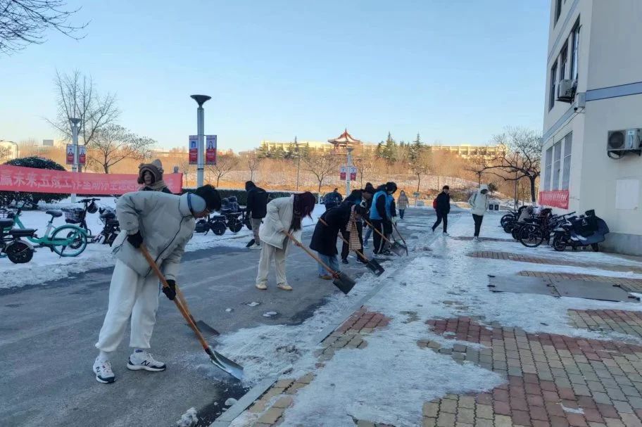 近日,聊城出现强降雪天气,校园银装素裹,主要道路被积雪覆盖。为了保障通行安全和便利,维持正常教学秩序。12月17日,世界杯体育官方网站积极组织校园路面清扫积雪活动,辅导员徐光建、王平以及部分党员、青年志愿者共同参与到活动中。