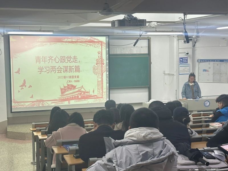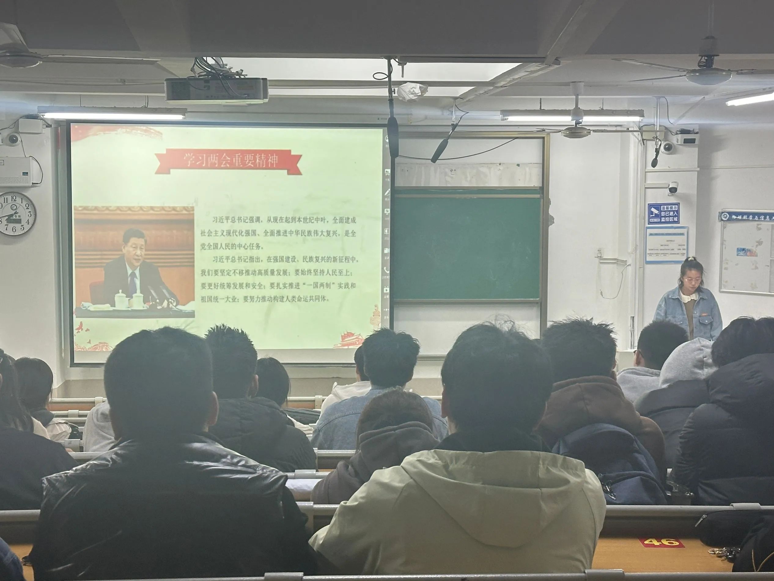为加强学生思想政治教育,深入学习贯彻两会精神、关注两会热点,不断提高政治站位,3月24日,世界杯体育官方网站于十一号楼C504开展“青年齐心跟党走,学习两会谋新篇”两会精神交流学习会,2022级2班团支书张淑佳为本次活动的主讲人,团委老师洪文静与2021、2022、2023级班长团支书共同参加本次活动。