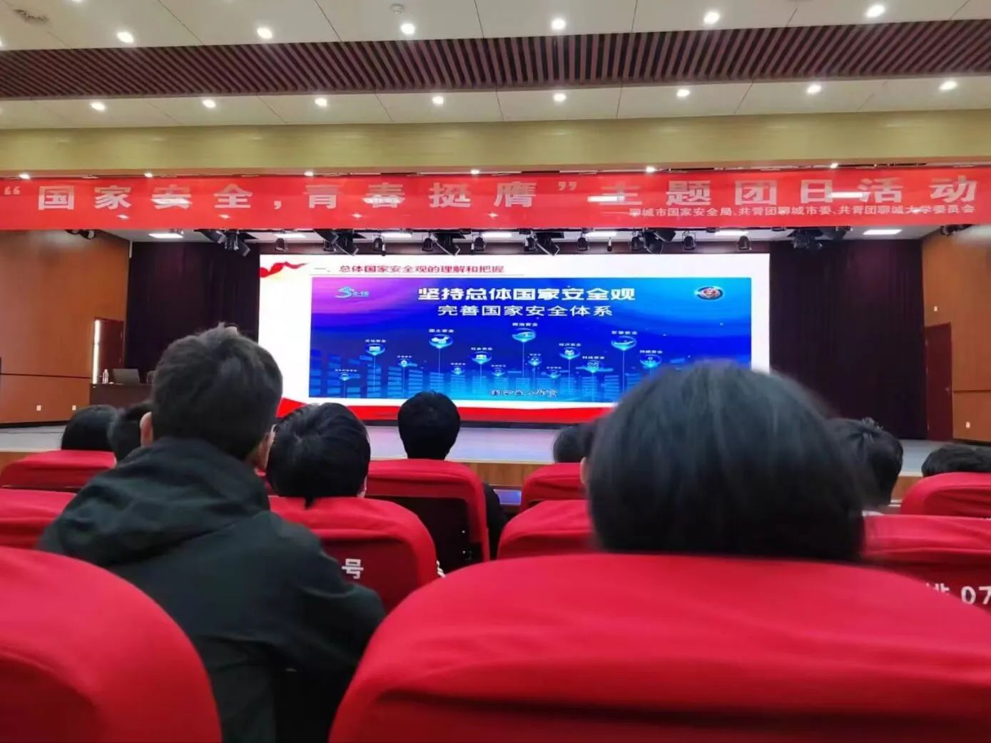 为全面贯彻党的二十大和二十届二中全会精神,引导广大团员青年深入学习贯彻总体国家安全观,动员引领广大团员青年坚定不移走中国特色国家安全道路,在第九个国家安全教育日到来之际,4月13日,聊城市国家安全局、共青团聊城市委、共青团聊城大学委员会于辰晖楼三楼青年之家联合举办“国家安全 青春挺膺”主题团日活动。此次活动邀请聊城市国家安全局相关负责同志担任主讲人,全校300余名学生参加,活动由化学化世界杯体育官方网站学院团委副书记孙忠月主持。