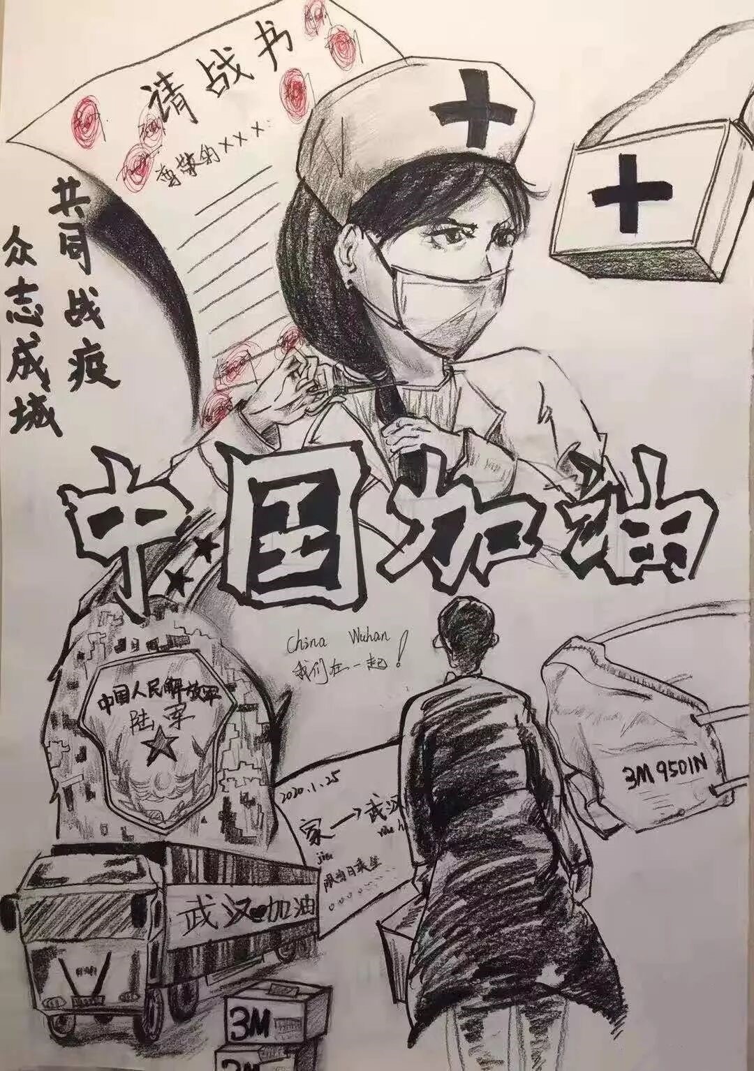 在这个特殊时期,同学们以漫画的形式一道共同投入到防控疫情的战斗中,以简单的有情怀、有担当、有温度、有力量的文艺作品传播正能量,并通过手机拍照上交。同全国人民一起,心手同牵,众志成城,用文艺作品作为精神力量的武器,坚决打赢疫情防控阻击战。一幅幅漫画描绘出疫情一线医生与患者的温情故事,画面温馨,用最直白的方式表达祝愿,共同祈愿仍然奋斗在最一线的医务战士们安康,祈愿我国所有同胞安康。也有同学参加了当地社区志愿者活动,通过漫画来展现在志愿者活动中,当地社区是如何抵御、控制疫情传播,不仅为同学们做了榜样,也为防控疫情知识的传播提供了有效途径。