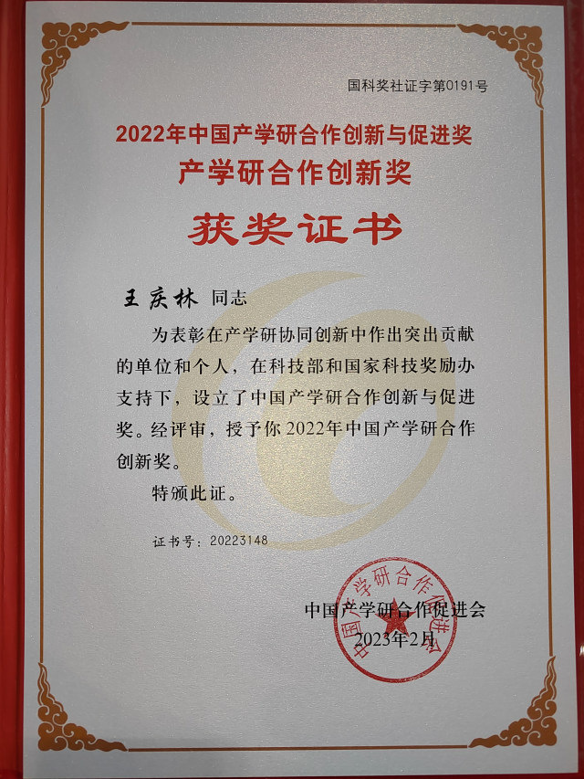 据了解,中国产学研合作促进会产学研合作创新与促进奖(国科奖社证字第0191号)是经科技部和国家科技奖励世界杯体育官方网站作办公室批准设立,该奖项面向政产学研金服用紧密结合的第一线,为推动建立以企业为主体、市场为导向、产学研深度融合的技术创新体系发挥了重要作用,是我国产学研界协同创新的最高荣誉奖。