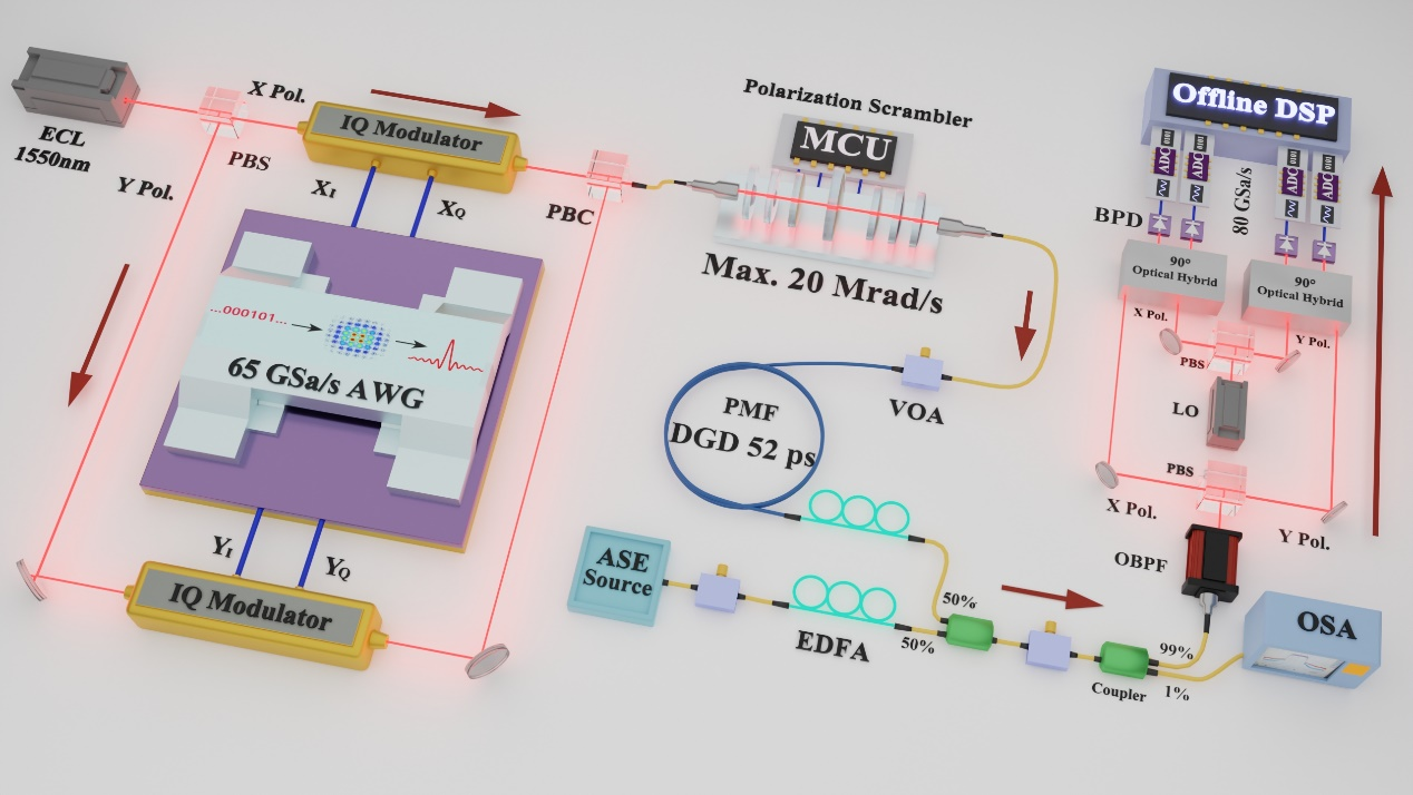 近日,许恒迎教授团队在高阶概率星座整形系统偏振均衡领域取得新进展。该研究成果以“Joint equalization of RSOP and PMD fused probability-aware with square-root cubature Kalman filter for the PDM PCS-64QAM system under extreme scenarios”(“极端情况下用于PDM PCS-64QAM系统的RSOP和PMD融合概率感知和平方根容积卡尔曼滤波器的联合均衡方案”)为题,发表在光学领域权威期刊《Optics Express》(《光学快报》,中科院2区Top期刊,影响因子3.8)。