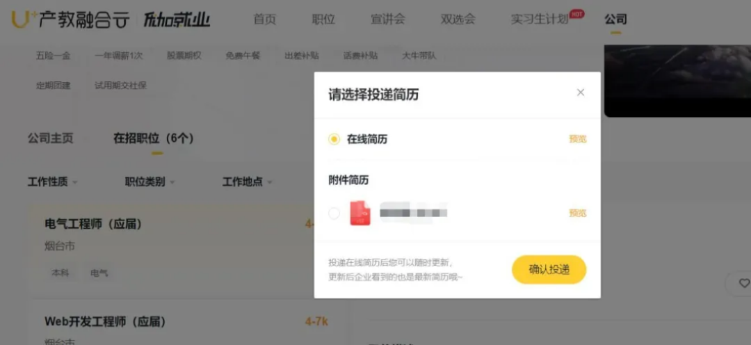 学生通过“优加就业”平台进行线上双选会简历投递及进度查询 ,具体操作流程如下: